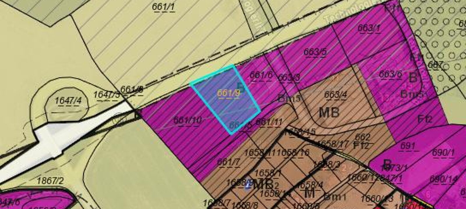 Nur durch eine kleine Strasse getrennt haben wir noch angrenzend 3000 m2 MB Widmung