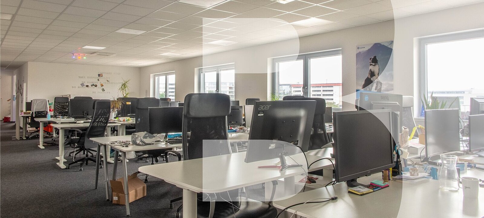 Alle Büros sind mit Teppichboden ausgestattet, verfügen über einen EDV-Glasfaseranschluss und eine Klimaanlage.