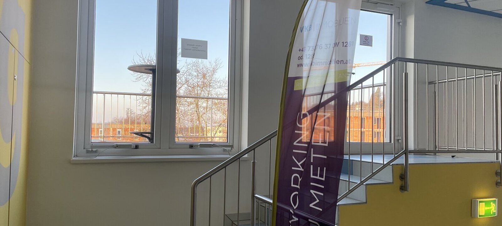 Ihr Firmenlogo wird auf hochwertigen Glastafeln bei den Haupteingängen, im Foyer und im Lift sichtbar platziert.